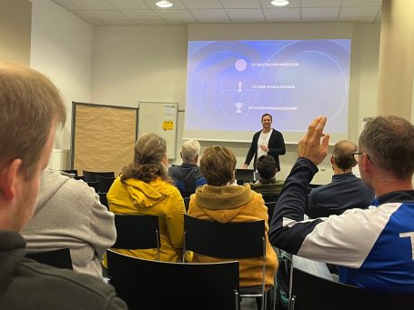 Im Vortragsprogramm gab es neben einem Vortrag der AOK über Sporternährung aufschlussreiche Einblicke von Michael Spatz in seine Karriere vom Profi-Spieler zum Geschäftsführer des TV Großwallstadt. Barbara Eschbach erläuterte, was man sich unter "Nachhaltigkeit im Sport" vorstellen kann und welche sozialen Projekte der TVG durchführt. André Lorbach sprach über "Motivation im Sport" und wie man mit Niederlagen umgeht. Nina Mattes öffnete Augen mit ihrem Vortrag zu "Doping im Sport".